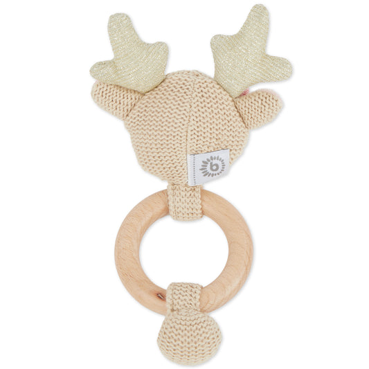 Baumwoll-Greifling Reh mit Rassel – Beißring, Greifspielzeug & Zahnungshilfe